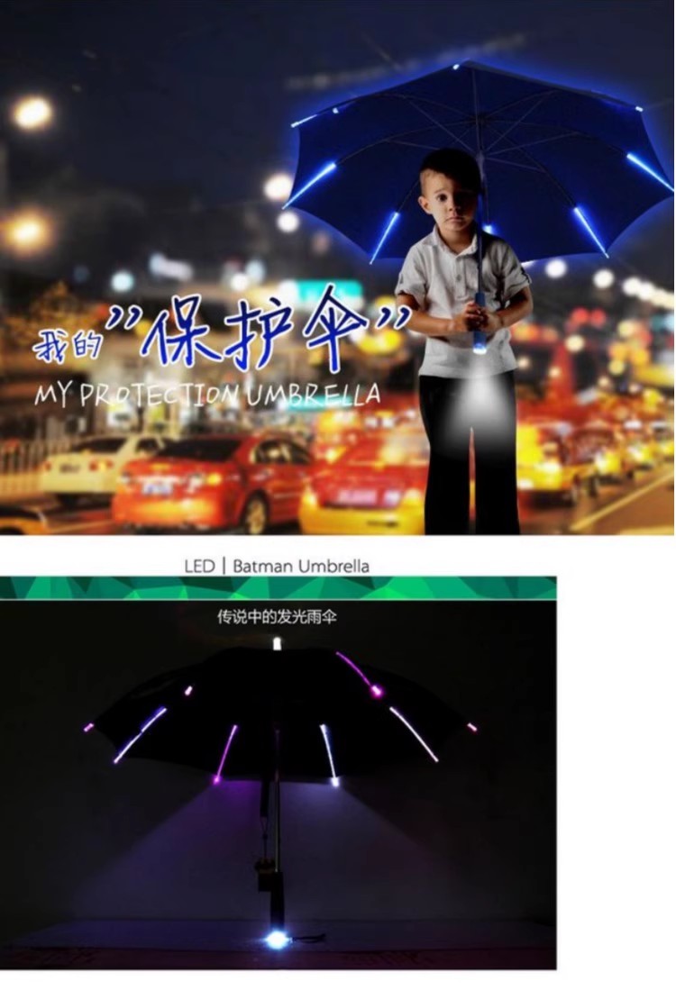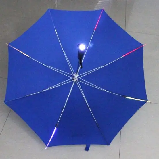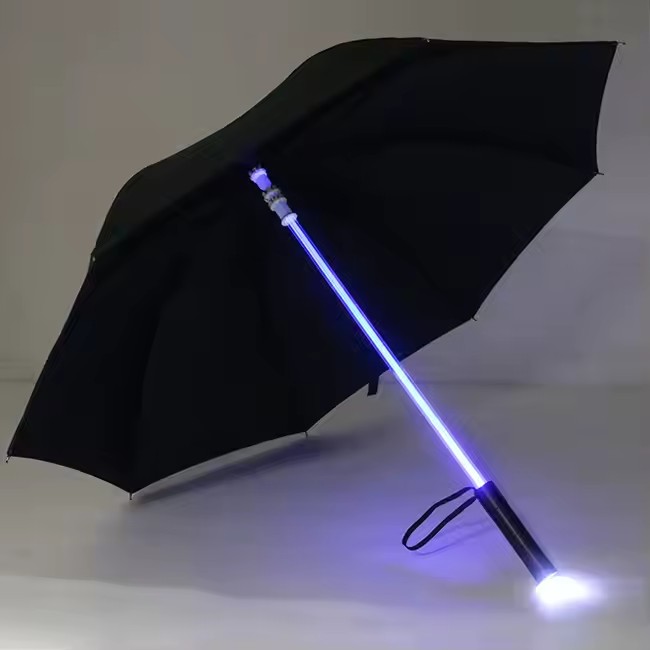 Okraj nebo kostra deštníku je osazena LED světelnými proužky, které lze nabíjet přes USB nebo napájet bateriemi pro vydávání monochromatického nebo vícebarevného světla (jako je bílé světlo, gradient RGB). Některé produkty podporují úpravu jasu nebo režim blikání.