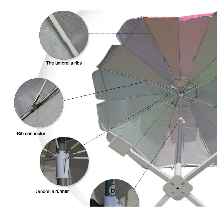 Slunečník zabraňující přímému slunečnímu záření na pláži ve velkém slunečníku. Design plážového deštníku je založen na terasovém deštníku a vývoji. Ale nyní s rozvojem minimalistického stylu šíření a komerčního rekreačního průmyslu, byl široce používán pro slunečníky na pláži, krásný tvar, efekt stínění proti slunci, nenákladná venkovní komerční reklama účely je vhodnější pro propagaci své doby. Slunečník se snadno pohybuje, jednoduchá instalace, nízká cena, může být výhodami oznámení loga.